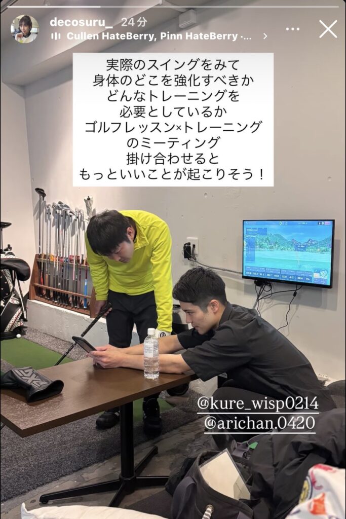 ゴルフスイングの課題を確認しつつ、トレーニングを実践した際の動きの変化をその場でチェックさせていただきました。